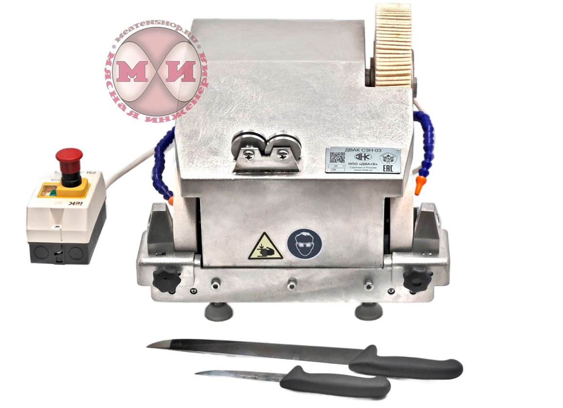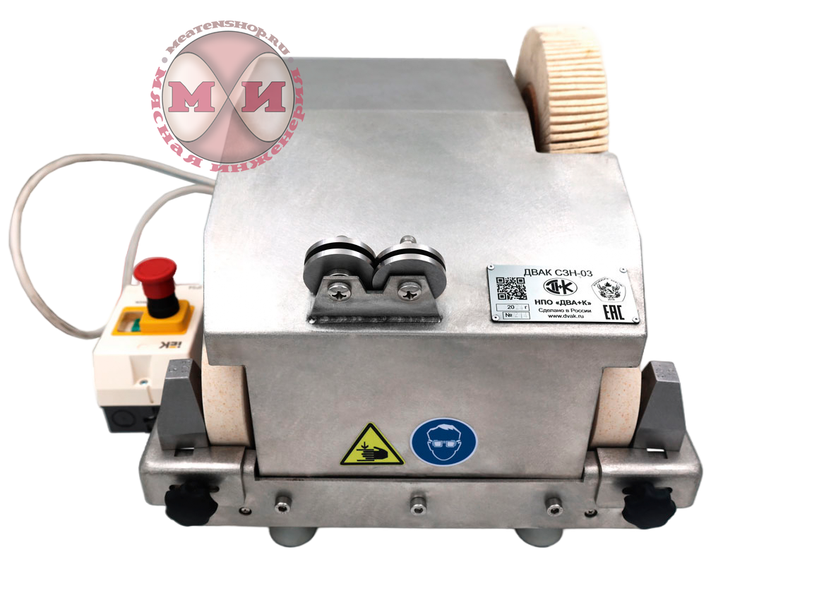 Заточной станок СЗН-03 предназначен для заточки рабочей поверхности, правки режущей кромки и полировки ручных ножей, которые применяются в пищевой промышленности, в том числе и в мясоперерабатывающей. Станки могут применяться в условиях ремонтных мастерских, которые обслуживают мясокомбинаты, пищеблоки или консервные цеха.