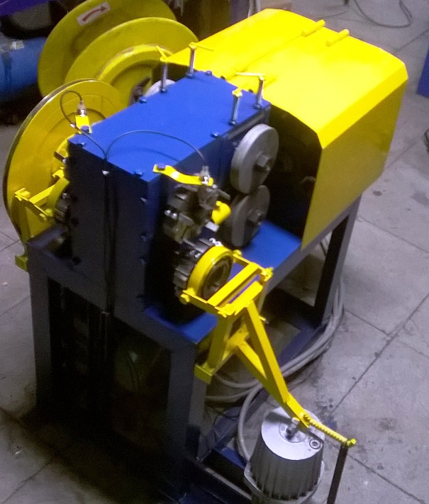 Нарезание прутков происходит без остановки подачи проволоки, плавающим ножом кратно 49 мм диаметр проволоки 3-6 мм.