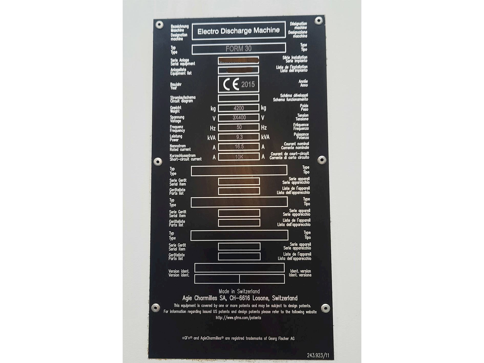 Эта эрозионная машина Agie Charmilles FORM 30 была построена в 2015 году в Швейцарии. Она имеет 1657 производственных часов, из которых 1331 - генераторные часы. Эта машина оснащена блоком управления той же марки и работает с максимальным весом инструмента 100 кг. Машина в очень хорошем состоянии