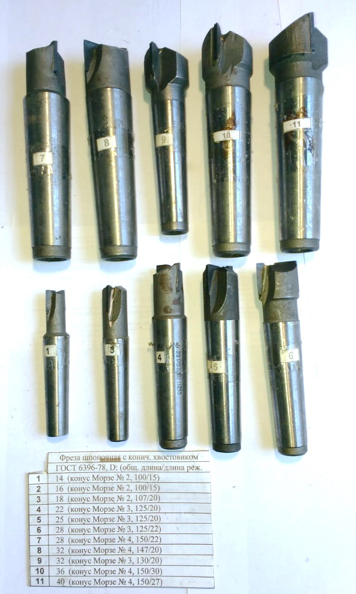 Фрезы шпоночные с конич. хвостовиком ВК8, ГОСТ 6396-78