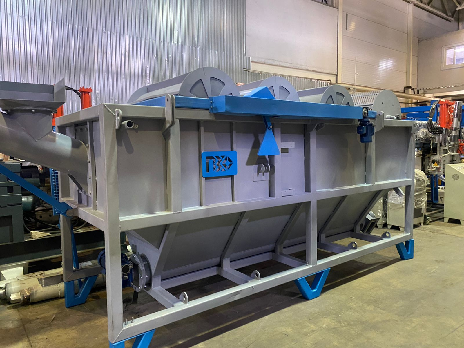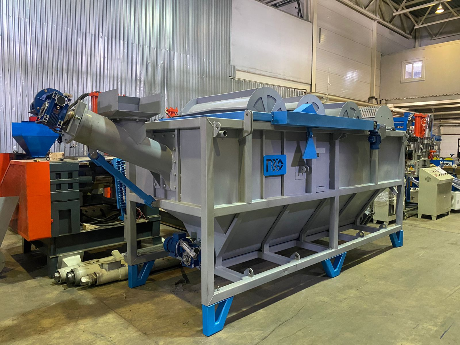 Ванна флотации предназначена для мойки и отделения загрязнений от дробленых полимеров с положительной и отрицательной плавучестью. Предназначена для использования с подачей сырья пневмотранспортом.