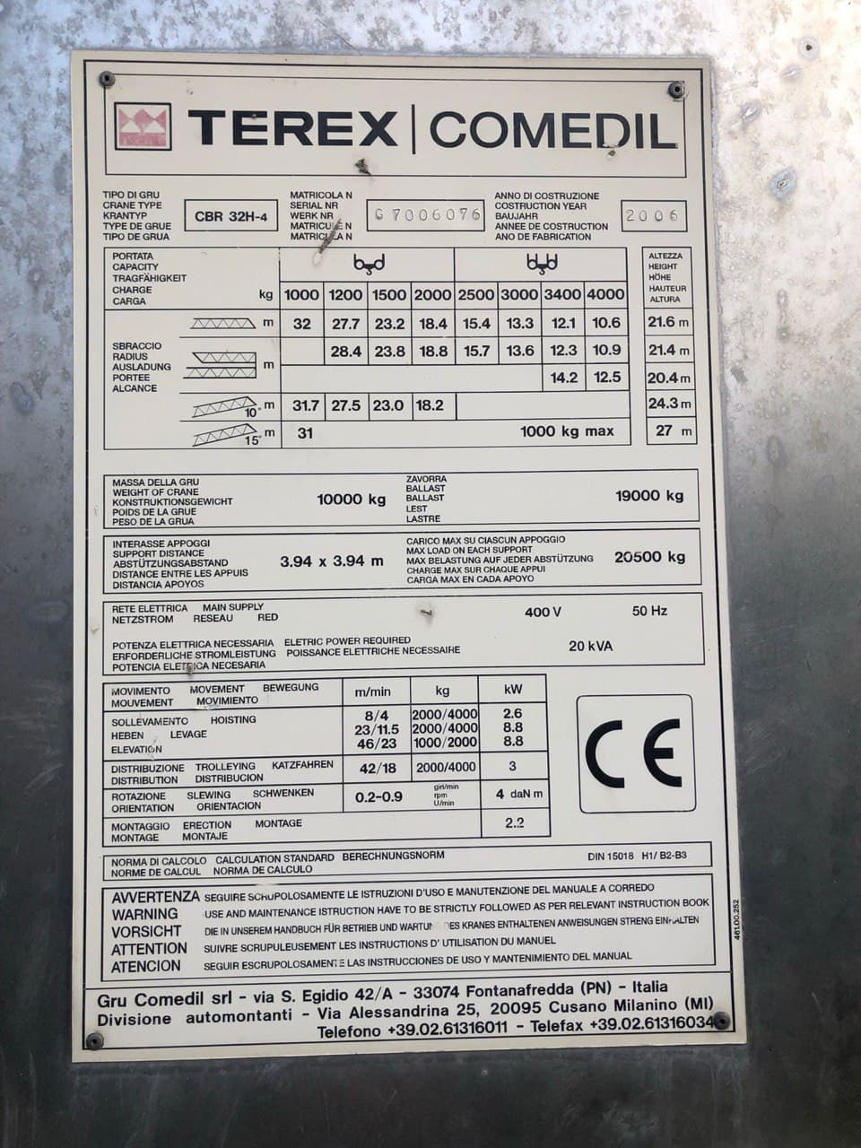 Башенный кран TEREX Comedil cbr 32h-4 Б/У - Продам в Минске