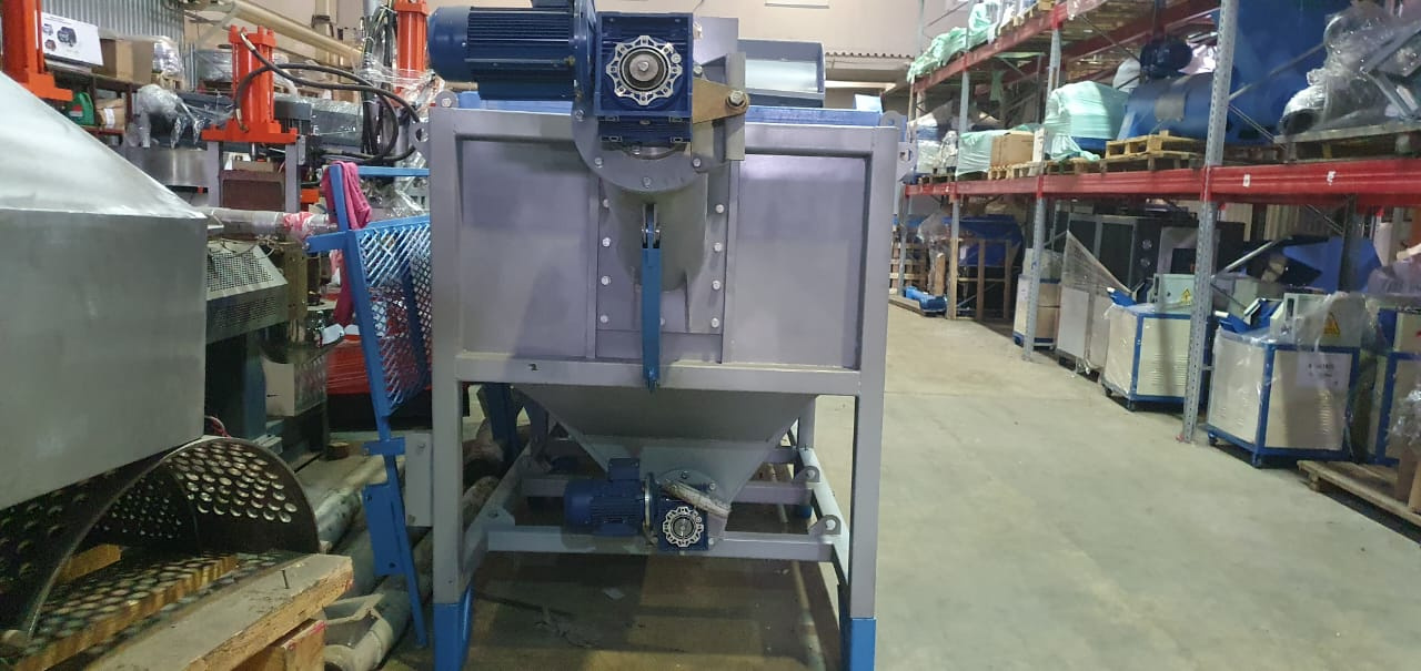 Принцип работы: сырье при помощи пневмотранспорта и установленного циклона попадает в зону загрузки, оттуда подхватывается шнековым загрузчиком и выгружается ниже уровня воды в ванну.