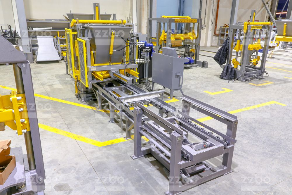Данная модель вибропресса серии УЛЬТРА снабжена: модулем подачи бетонной смеси в матрицу, модулем автоматической подачи поддонов, гидроподъемником, модулем второго слоя. Ручной труд минимизирован.