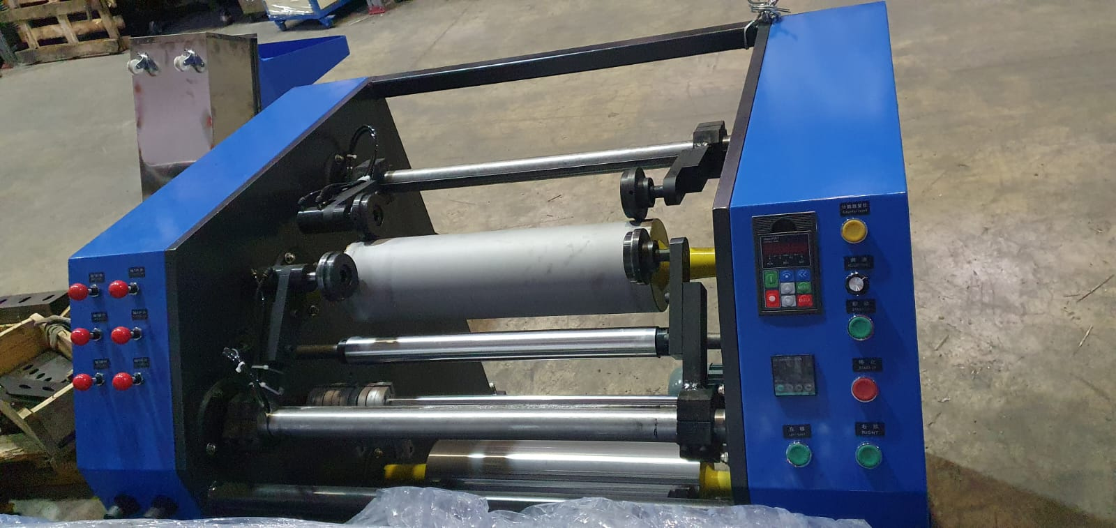В наличии производительный полуавтоматический перемотчик стрейч пленки FJJ-550.