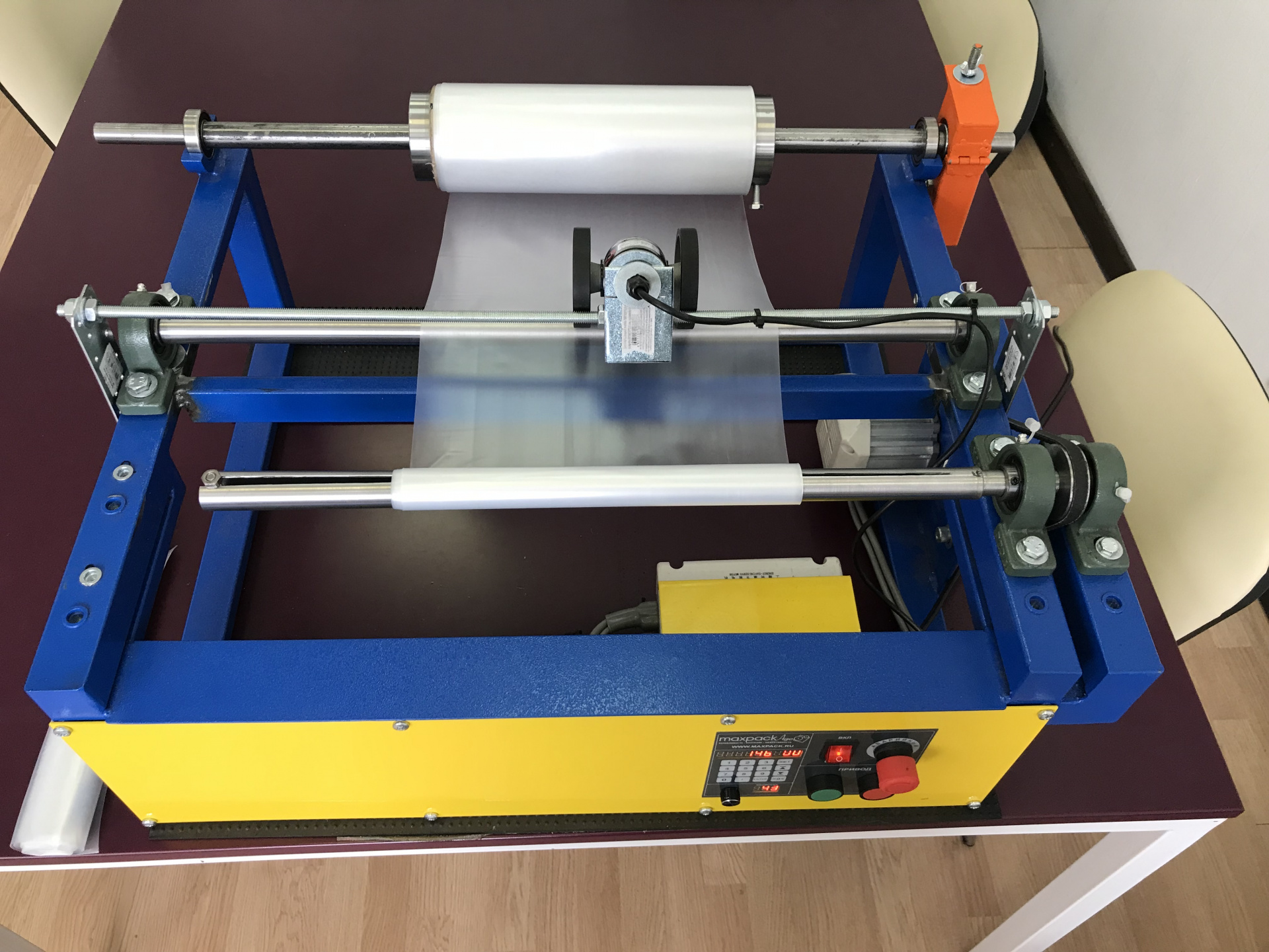 Есть тормоз для регулировки натяжения наматываемого ролика.