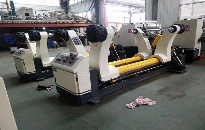 Гидравлический раскат 1400 - узел гофроагрегата, на который устанавливаются 2 бобины с плоскими слоями бумаги. Натяжение полотна контролируется при помощи тормозов, установленных на каждой "лапе" раската. Применяются для возможности использования на гофроагрегате рулонов большего диаметра, ширины, массы.