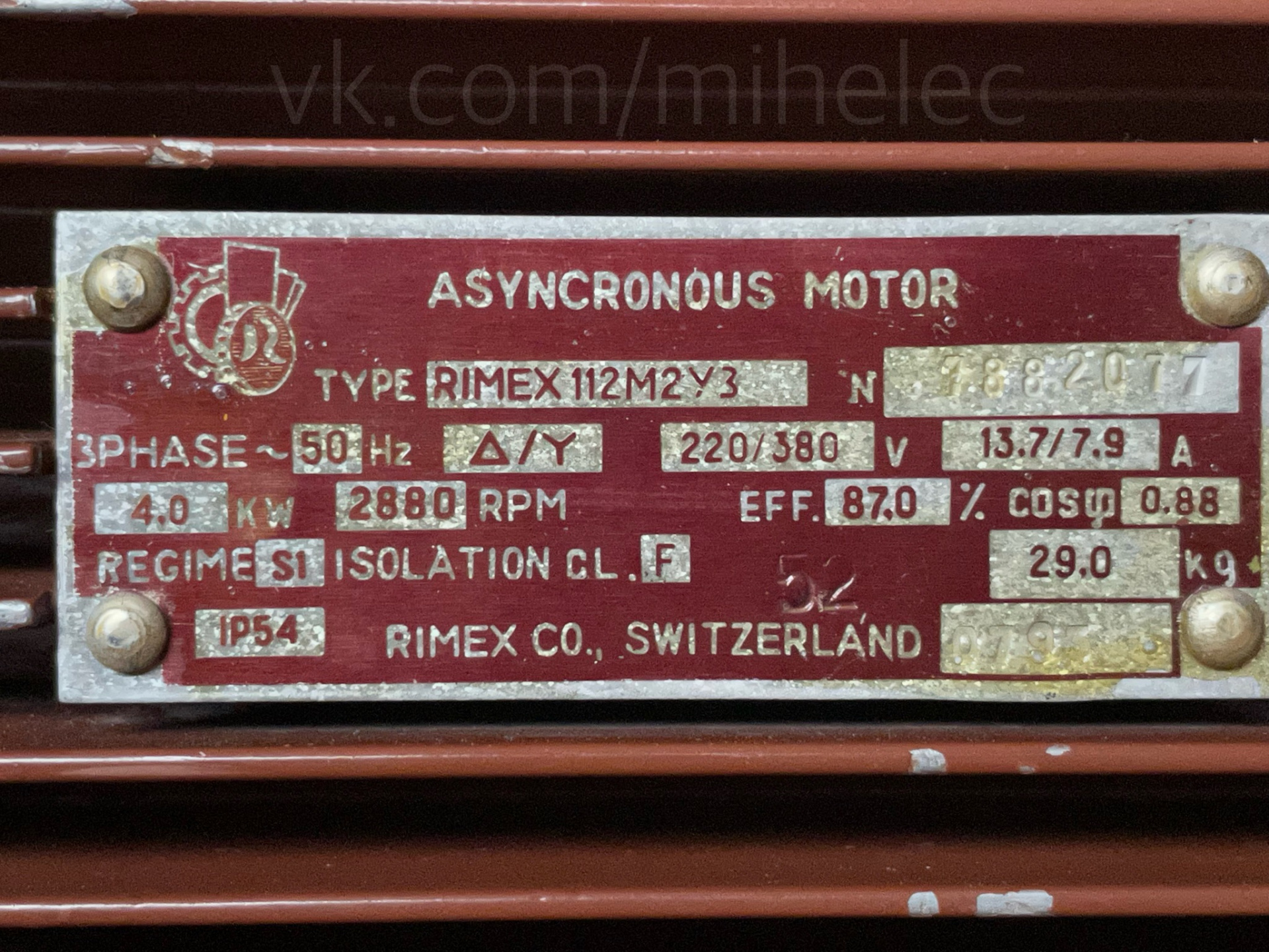 Электродвигатель Rimex Switzerland 4 кВт, 2880 об/мин 380V (220V) - Продам в Москве