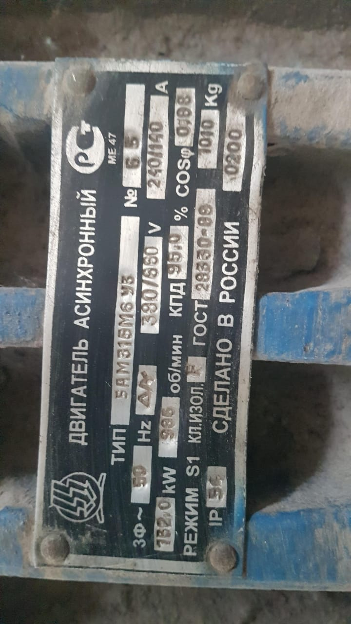 Продам электродвигатель переменного тока 132 кВт 980 оборотов на лапках 2010 года с хранения цена 100000руб