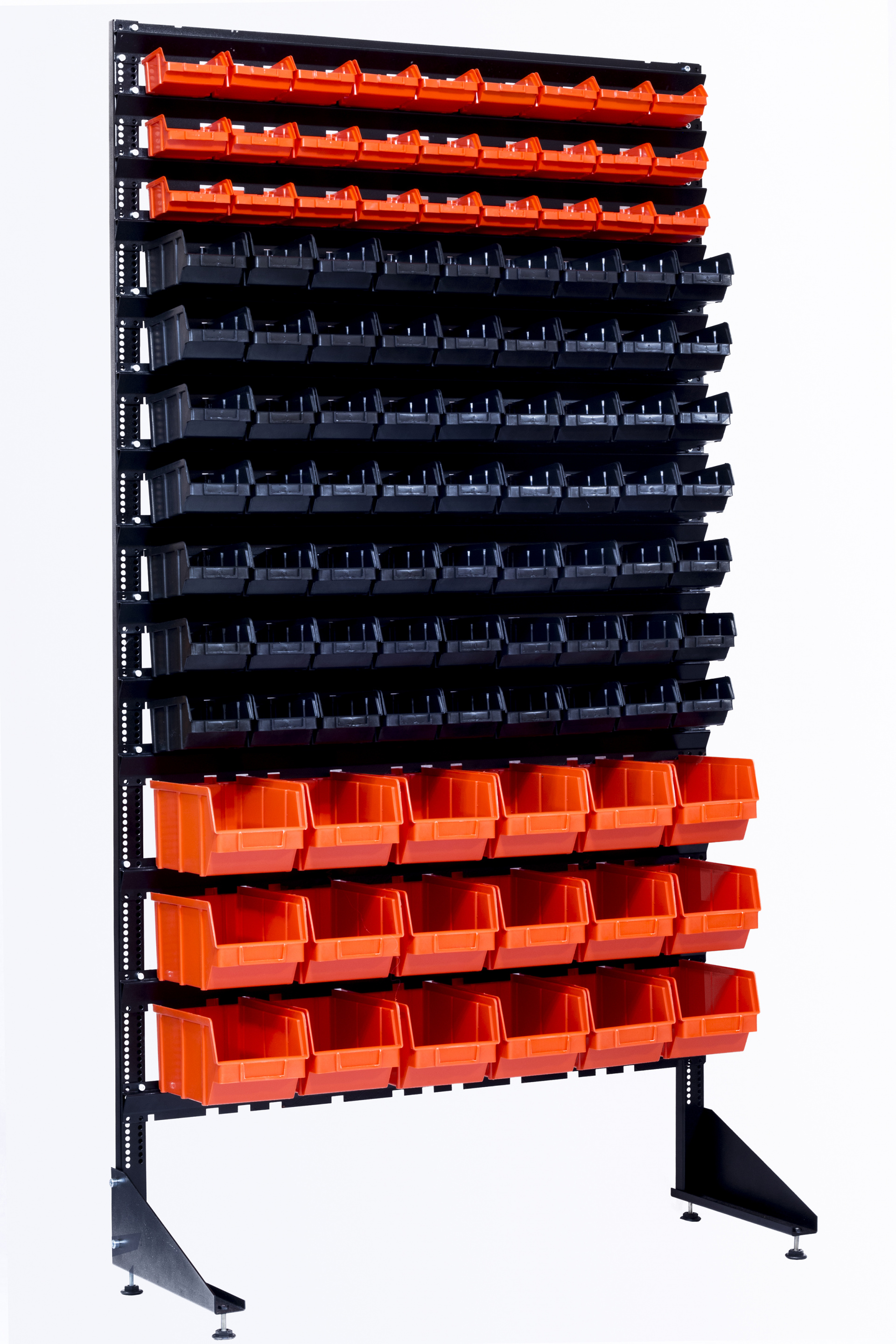 Стеллаж универсальный с пластиковыми ящиками лотками под запчасти