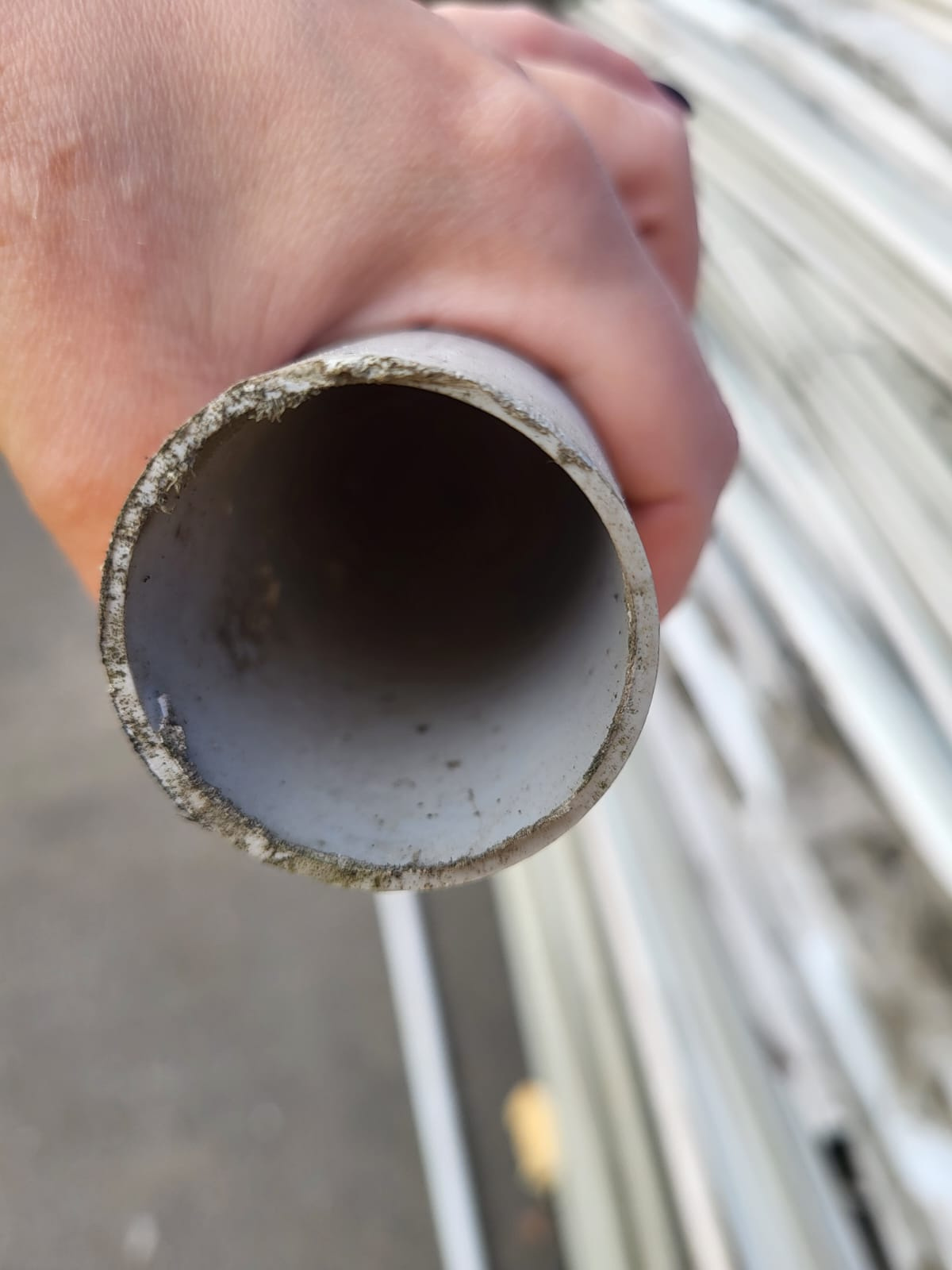 Труба пвх гладкая, жесткая цвет серый. Длина - 3 метра. IP - 65. Наружный диаметр - 16 мм (30 штук) и 40 мм (30 штук). Подходит для открытого монтажа на поверхность, для установки в бетон, скрытой установки в стяжку, скрытого монтажа под штукатурку. Длина за штуку длиной 3 метра - 40 рублей. В наличии 60 штук. Трубы полипропилен, цвет белый, для жидкости. Длина за штуку длиной 3 метра - 30 рублей. В наличии 60 штук.
