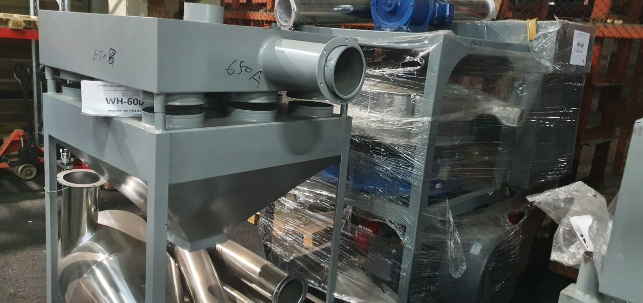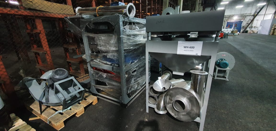 Дисковый измельчитель для полимеров. Основной двигатель 55 кВт, вентилятор 5,5 кВт., вибросито 1,1 кВт. Производительность - 250 кг/ч