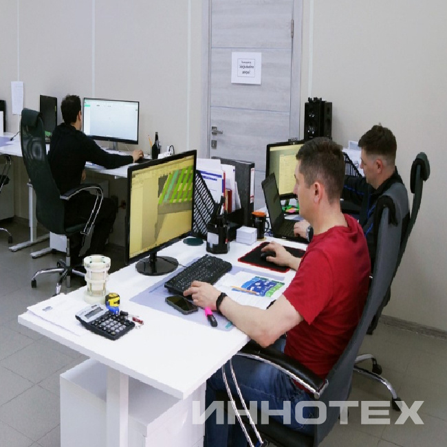Конструкторский отдел компании «Иннотех» представлен специалистами высокого уровня, которые регулярно проходят повышение квалификации за рубежом. В совокупности с производственными мощностями предприятия (вертикальный обрабатывающий центр, токарный станок с ЧПУ, токарно-винторезный станок с УЦИ, сверлильный станок, зубофрезерный вертикальный полуавтомат, фрезерный станок, горизонтально-шлицефрезерный станок, вертикально-фрезерный станок с ЧПУ, шестишпиндельный полуавтомат, вертикальный консольно-фрезерный станок, ленточнопильный станок, пресс электрогидравлический) это позволяет производить оборудование любого уровня сложности в соответствии с требованиями Заказчика. Специалисты компании готовы осуществлять сервисную поддержку своих клиентов на территории России, а также проводить аудит оборудования сторонних производителей и, в случае необходимости, устранять недочёты.