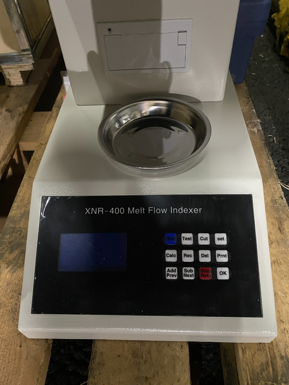 Пластометр проводит измерение ПТР (показателя текучести расплава) полимерной гранулы.