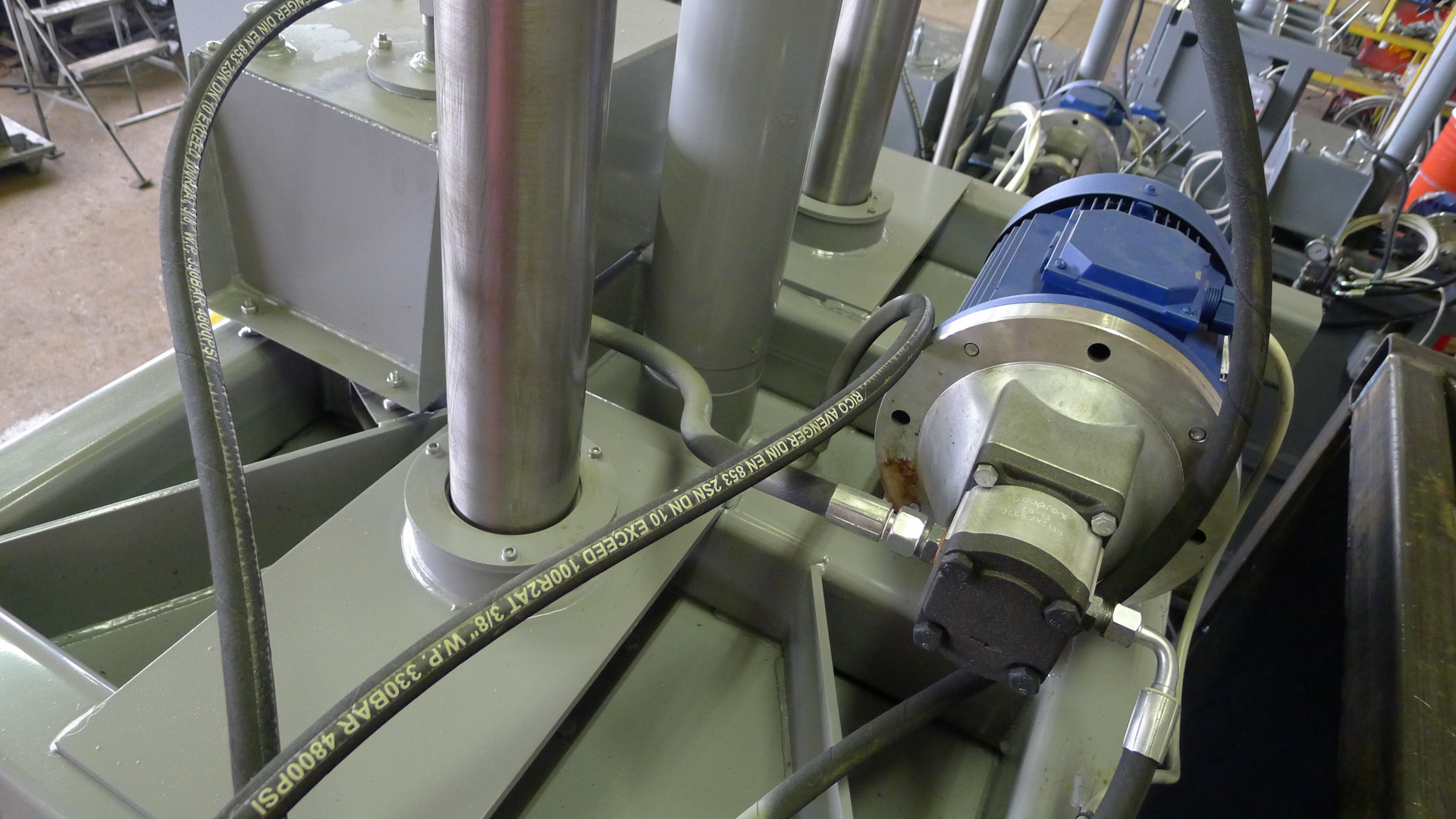 На прессе установлен СПЕЦИАЛЬНЫЙ ГИДРОЦИЛИНДР, т.к. мы не используем гидроцилиндры от трактора, которые не рассчитаны на такие нагрузки.