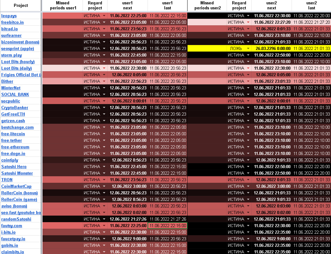 4. Подсветка проектов (8 оттенков), требующих периодической активности. Позволяет вовремя избегать ограничительных мер от администрации таких проектов за неактивность;
