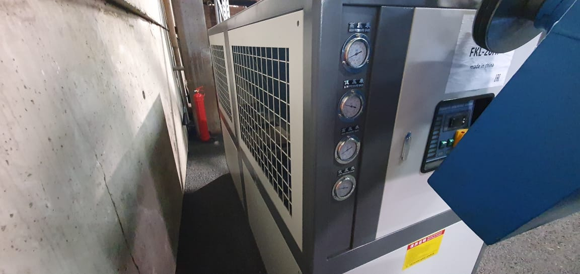 Чиллер с воздушным охлаждением конденсатора, Мощность компрессора - 3 кВт, Тип компрессора - Спиральный, Объем охлажденной воды - 100 л/ч, Тип испарителя - Пластинчатый медно-паяный, обеспечивает отвод тепла от хладоносителя. Герметичный. Производительность - 12897 ккал/час