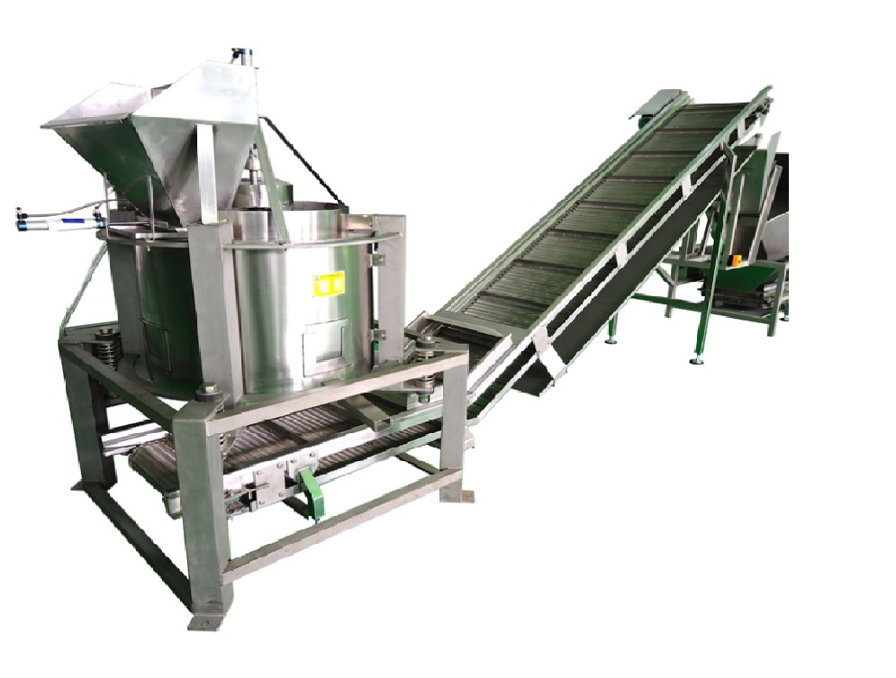 После обжарки продукт автоматически выгружается из корзины либо в систему удаления излишков масла, либо сразу в машину для посола /посыпки специями.