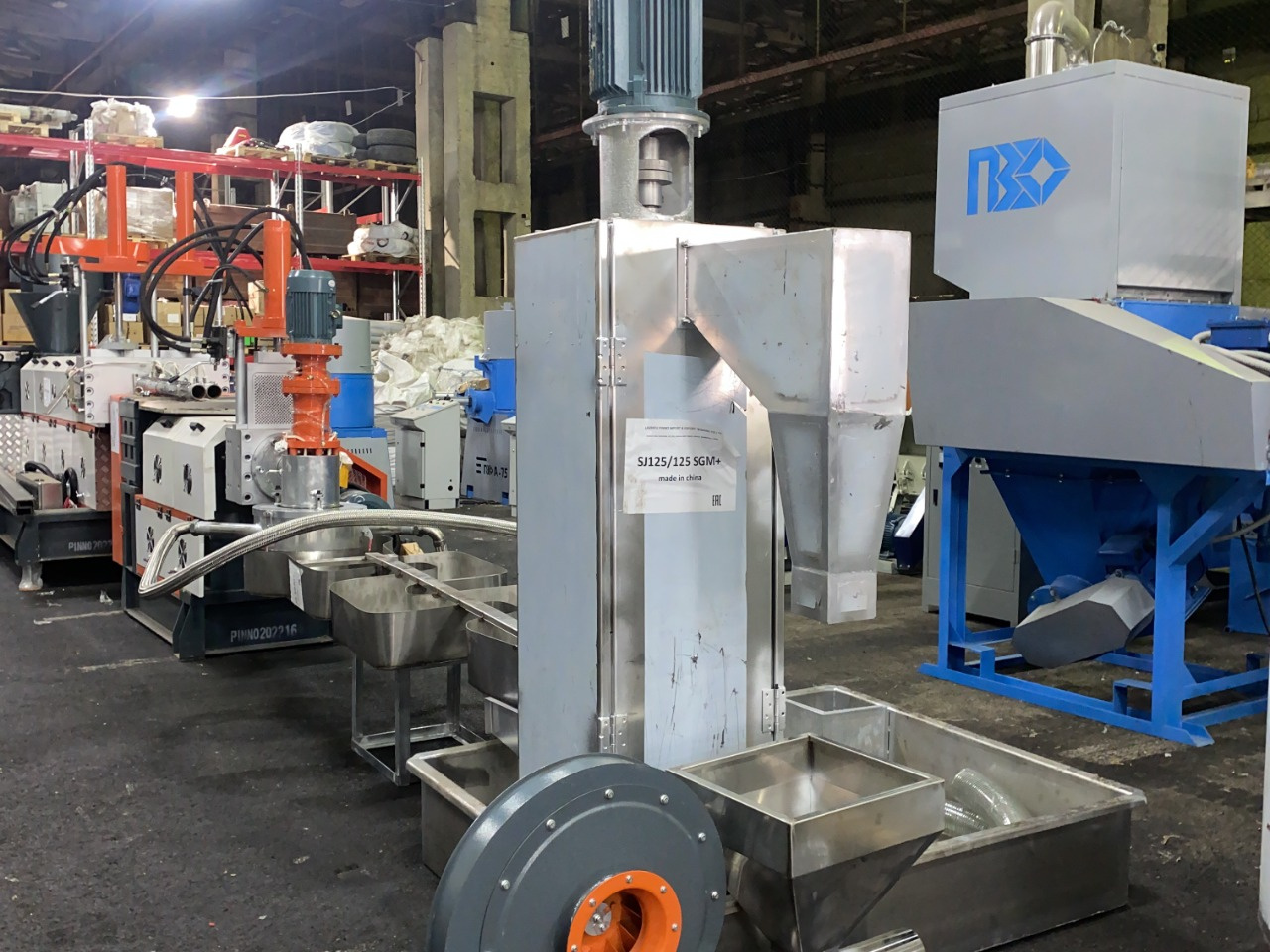 Второй каскад 22 кВт, азотированный шнек, диаметр 125, длина 1150 (LD 1/9,2) Гранулятор оснащен бункером принудительной загрузки, центрифугой для сушки гранулы и пневмовыгрузом с накопителем. На первом и втором каскадах гидравлические фильтры. Дополнительные фото по запросу.