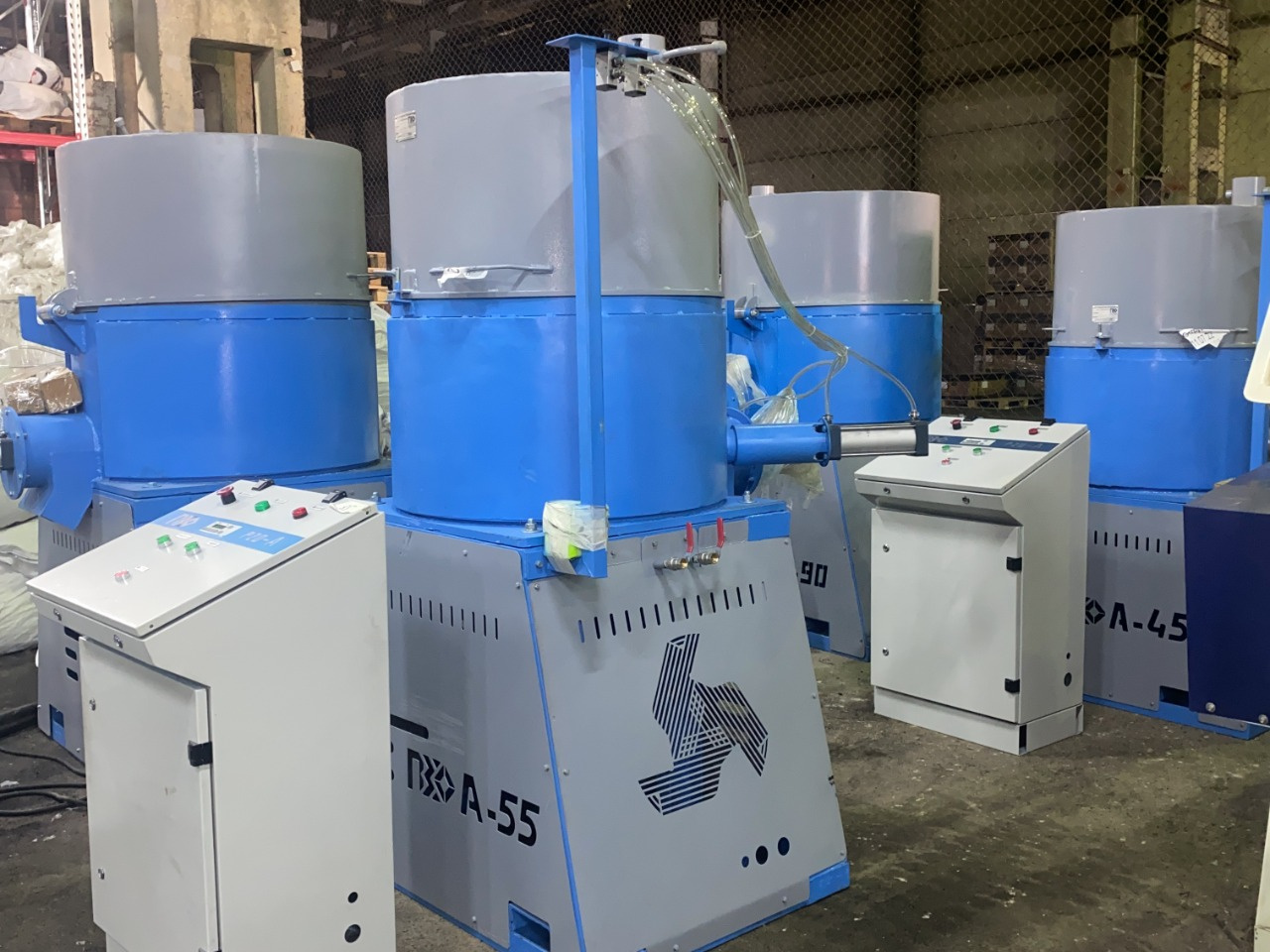 Агломератор служит для повышения сыпучести пленочных материалов. Оборудование измельчает и перерабатывает легкий материал в катушки, что позволит применять его в больших объемах и загружать с большей плотностью.