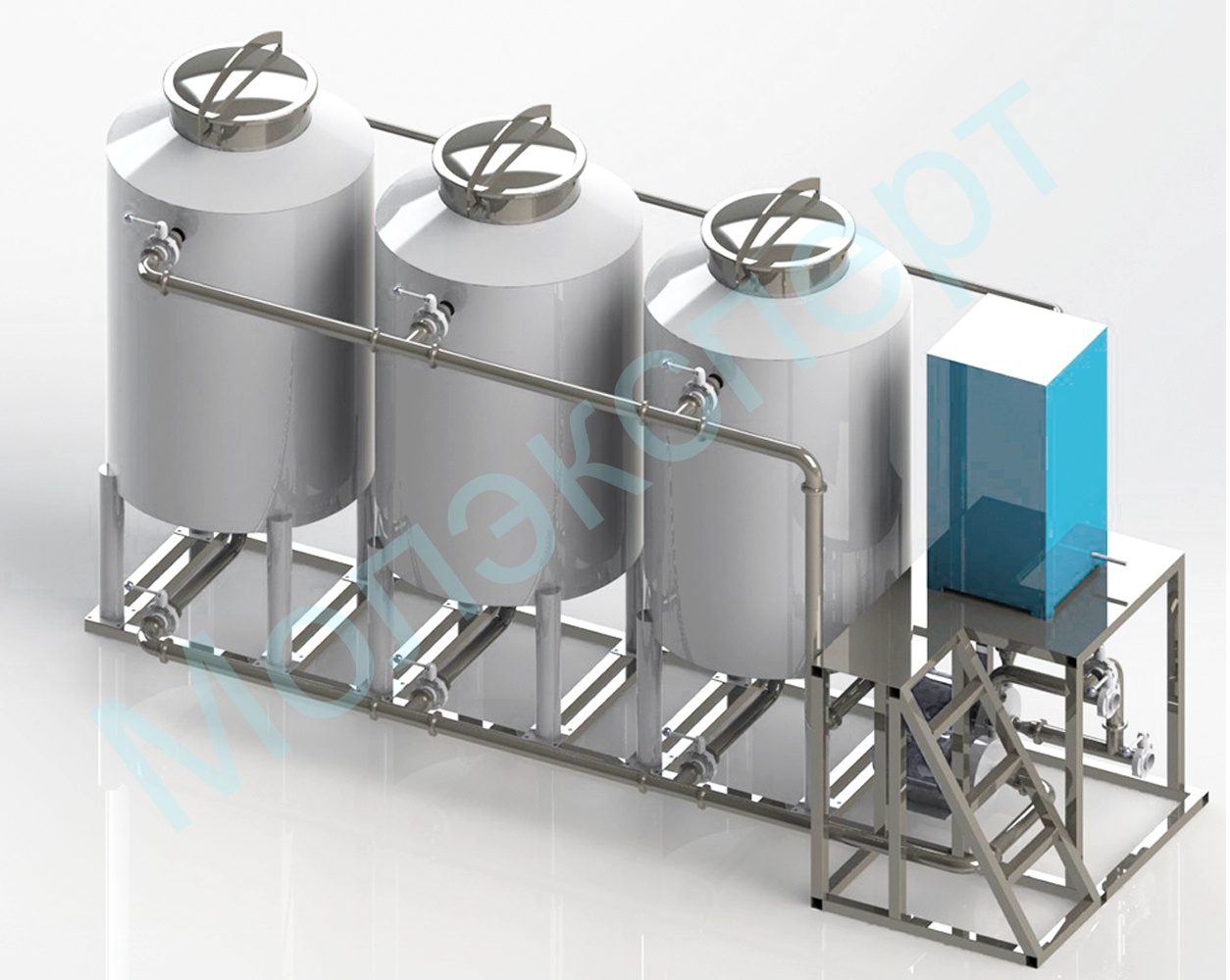 CIP-мойка(3х1000) Двухконтурная. Стационарная. Полу-автоматическое управление Предназначена для полуавтоматической безразборной мойки оборудования и трубопроводов молочного, сыроваренного производства.