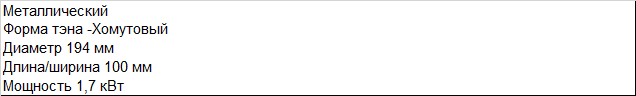 | Металлические, Керамические и Стекляные Форма тэна -Хомутовый, патронный, уголковый, прямой Диаметр в ассортименте Длина/ширина в ассортименте Мощность от 1кВт до 5 кВт |