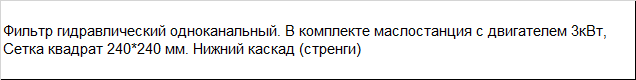 | Фильтр гидравлический двух канальный. В комплекте маслостанция с двигателем 3кВт, Сетка квадрат 240*240 мм. Нижний каскад (стренги) |