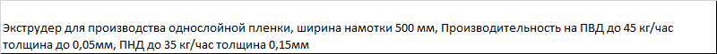 | Экструдер для производства однослойной пленки, ширина намотки 500 мм, Производительность на ПВД до 45 кг/час толщина до 0,05мм, ПНД до 35 кг/час толщина 0,15мм |