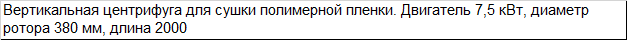 | Вертикальная центрифуга для сушки полимерной пленки и дробленки. Двигатель 7,5 кВт, диаметр ротора 380 мм, длина 2000 |