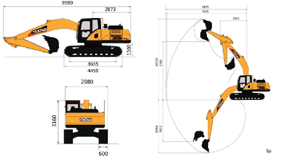 | Дальность копания (на уровне грунта) | 9635 мм |