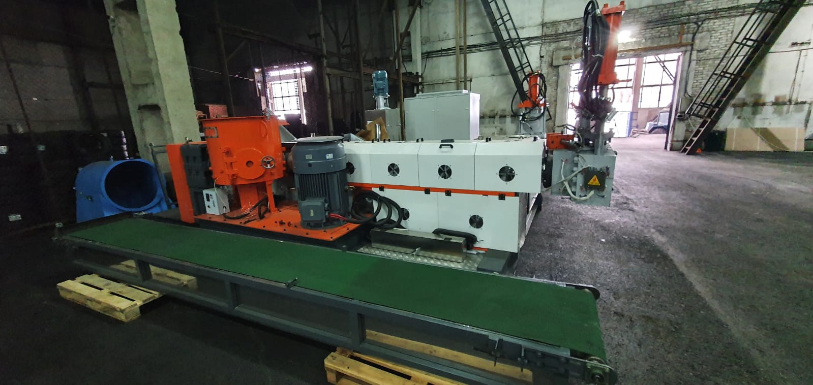 | Двухкаскадная линия грануляции для работы на мягком сырье с компактором. Компактор вместо бункера принудительной подачи (перерабатывает мягкое сырье в крошку "агломерат", горячая водо-кольцевая резка и вертикальная центрифуга для сушки гранул. Производительность до 350 кг/ч. Двигатель первого каскада мощностью 90 кВт, второй 37 кВт и компактор 75 кВт. В комплектации гидравлические шиберные фильтры, транспортер и частотники, шнековая пара из стали 38 CrMoAl - срок службы до 5 лет, длина шнека 1 каскада 4200мм и второго 1500мм. |