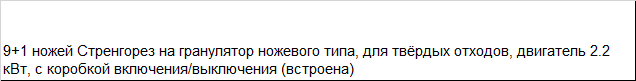 | Стренгорез на гранулятор ножевого типа, для твёрдых отходов, 9+1 ножей, двигатель 2.2 кВт, с коробкой включения/выключения (встроена) |