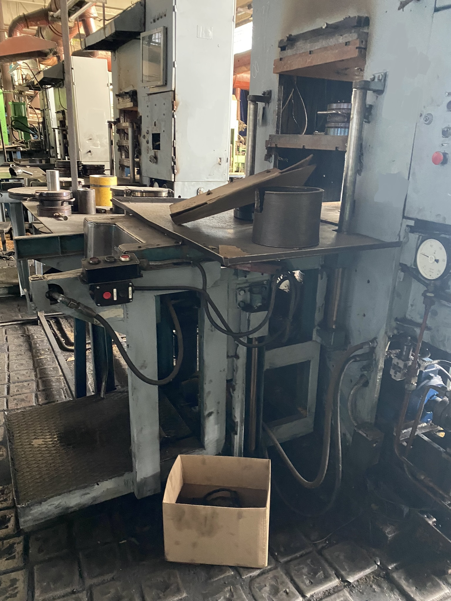 Пресс вулканизационный 5 нагревательных плит. Лифт гидравлический для прессформ. 250 тонн усилие смыкания. Плиты 600*600. Подключен