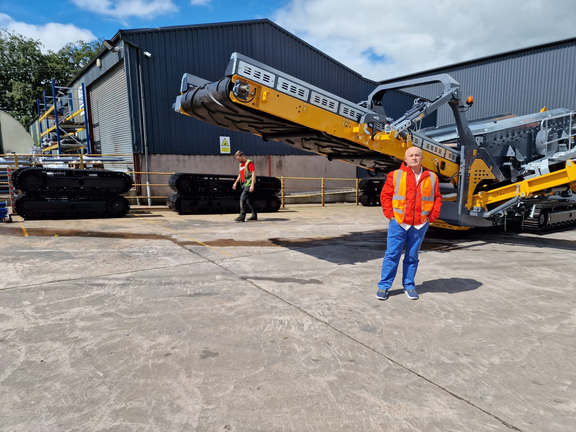 Мобильная дробилка на гусеничном шасси с магнитным блоком для отсортировки металла.