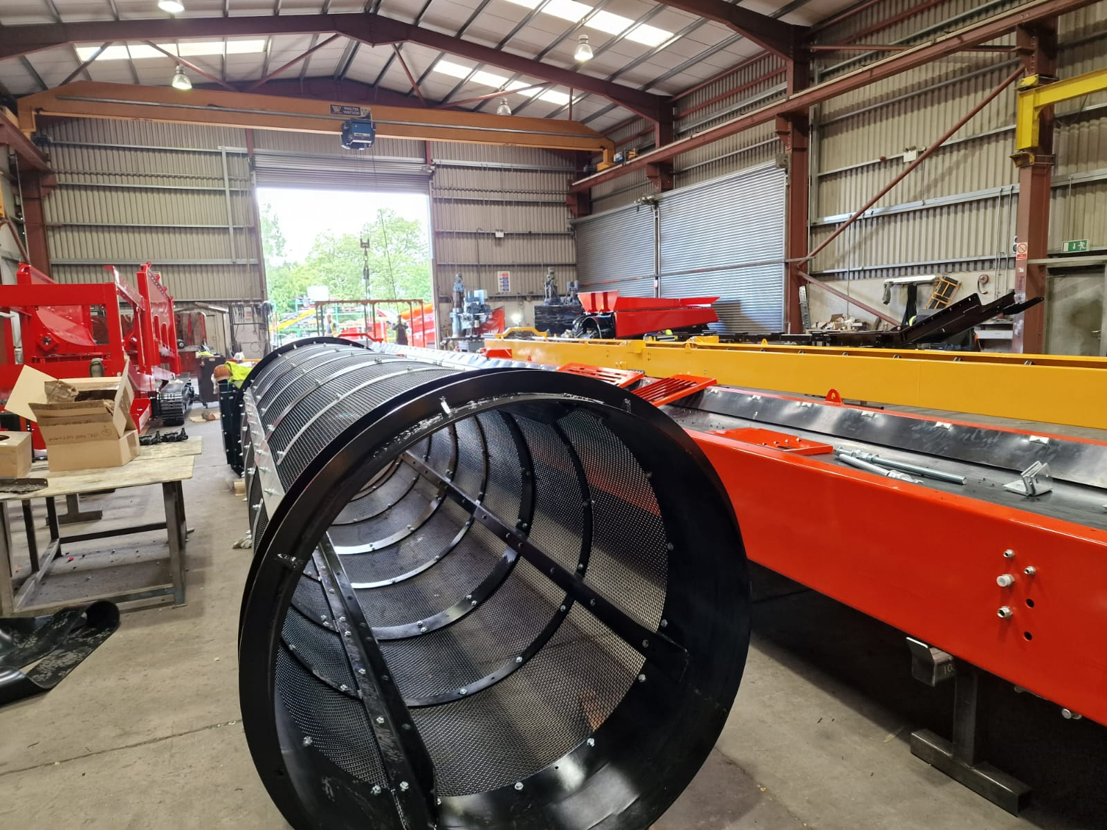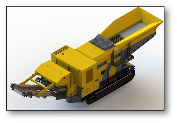 Мобильная дробилка на гусеничном шасси с магнитным блоком для отсортировки металла.