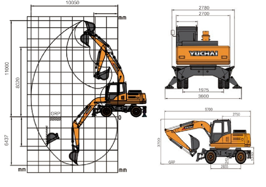 | Радиус копания | 10 050 мм |