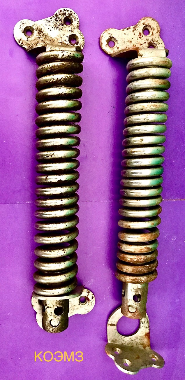 КОЭМЗ продает: Пружину - доводчик для двери с большим усилием. Расстояние между посадочными отверстиями - 300 мм. Количество витков на пружине - 20. Толщина пружинной проволоки - 7 мм. Внешний диаметр пружины - 40 мм. Общий вид и комплектность на фото.