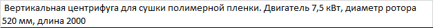 | Вертикальная центрифуга для сушки полимерной пленки. Двигатель 7,5 кВт, диаметр ротора 520 мм, длина 2000 |