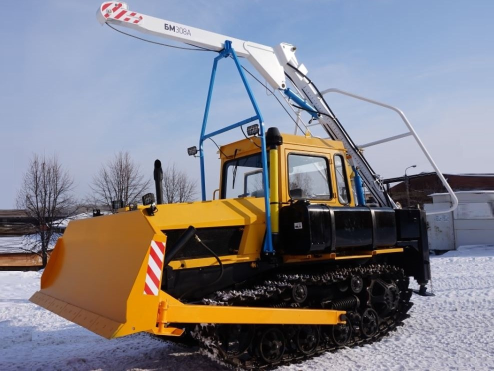 Бурильно-крановые машины БМ-308А используются для бурения скважин и установки в них опор, для ремонта и обслуживания ЛЭП; также применяется при планировке небольших строительных площадок, засыпке ям и траншей, погрузке и транспортировке сыпучих материалов на небольшие расстояния.