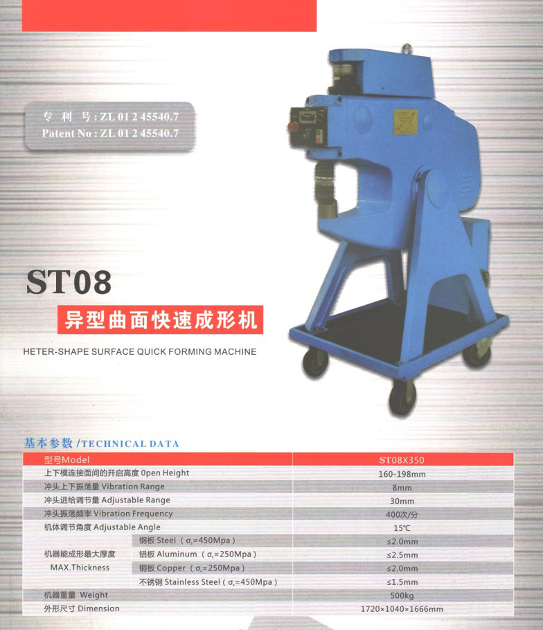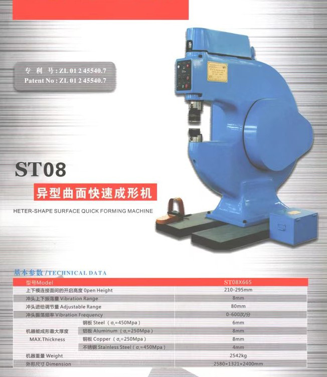 | Модель ST-08х665 Высота раскрытия 210-295мм диапазон вибрации 8мм регулируемый диапазон 80мм максимальная толщина: - сталь 450МРа 6,0мм - нержавеющая сталь 450МРа 4мм - алюминий 250МРа 8мм - медь 250МРа 8мм Вес 2550кг |