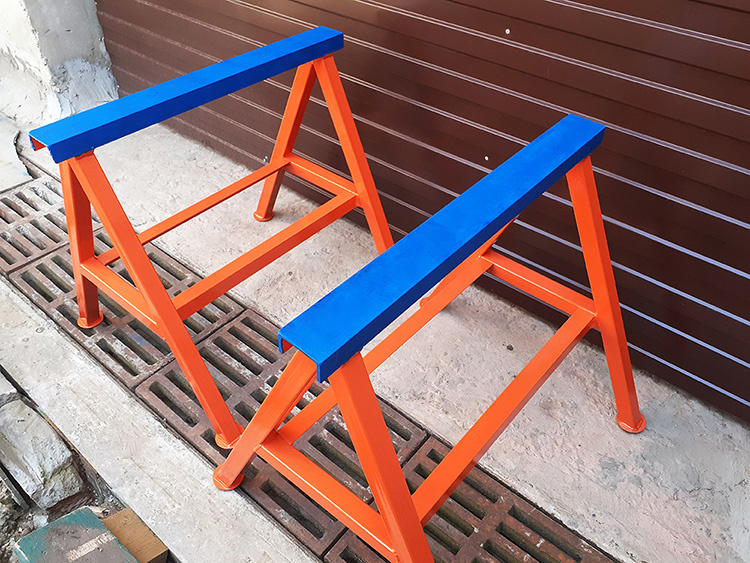 Козлы изготовлены из конструкционного швеллера, труб и уголка.