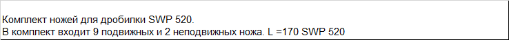 | Комплект ножей для дробилки SWP 520. В комплект входит 9 подвижных и 2 неподвижных ножа. L =170 SWP 520 |