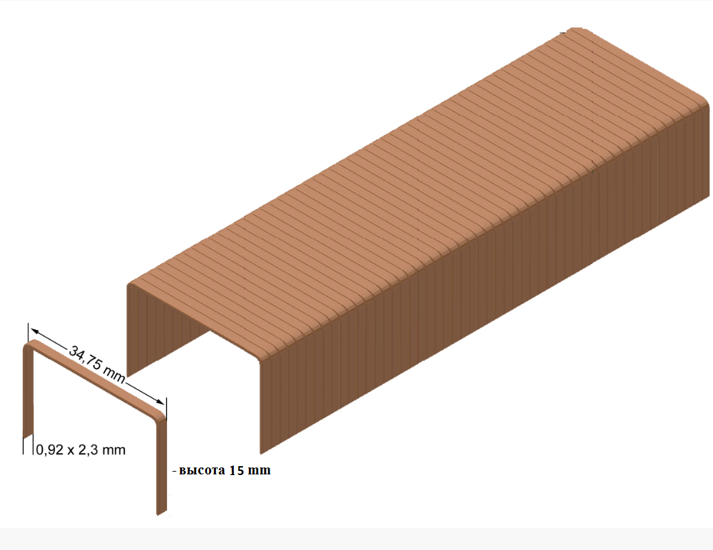 Скоба типа 35-15 (Cu) - омедненная для сшивания 3-х и 5-тислойного картона.
