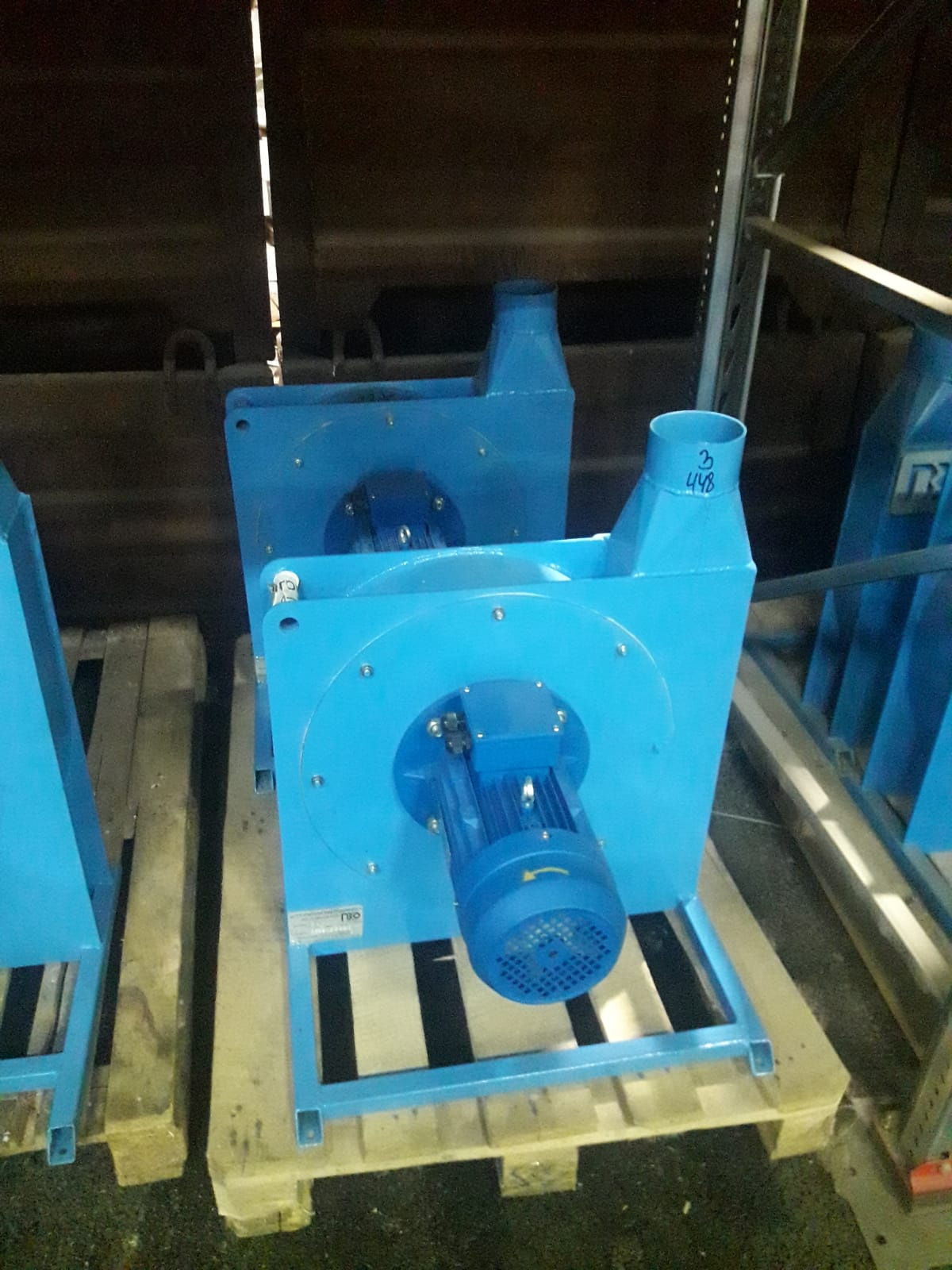 | Мощность двигателя = 7.5 кВт. Ф колеса = 570 мм. Частота вращения колеса = 2920 об/мин, Производительность 1610-2844 м3/мин, Давление 5697-5517 Па., вес 113 кг |