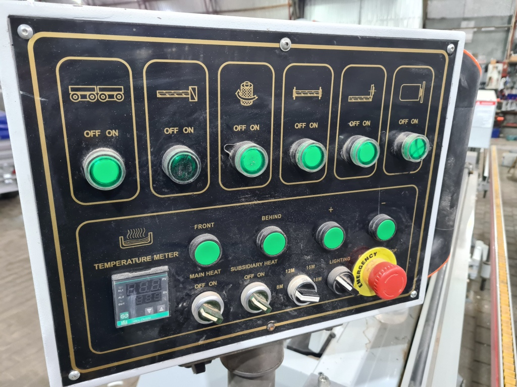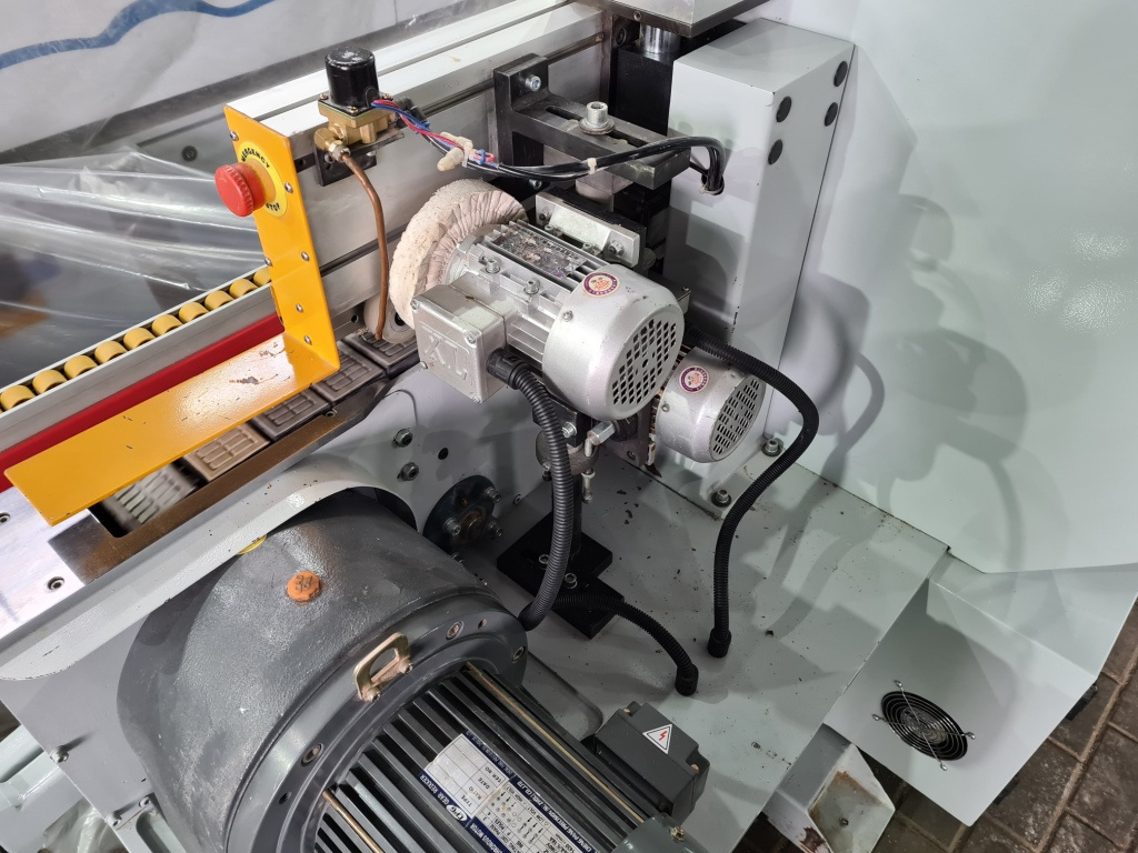 Узлы : Предварительный подогрев,Прифуговка,узел приклейки,прижимной блок,2-х моторный торцовочный узел,фрезерный узел,цикля радиусная,Полировка.