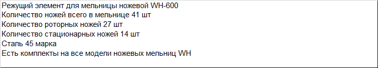 Комплект ножей для мельницы ножевой WH-600
