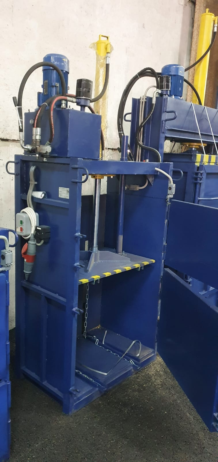 | Пресс гидравлический с двумя дверьми и цепями для выгрузки тюка, серии компакт. Идеально подойдет для прессования отходов до 650 кг в смену, предназначен для гостинец, кафе, магазинов, баз и складов. Прессует с усилием 15 тонны, вес тюка до 70 кг, 2 нити обвязки. Габариты загрузочной двери 500х600 мм, Габариты тюка ВxШxГ (мм) 400x600x350, Габариты пресса ВxШxГ (мм) 2000x950x450 масса 450 кг, двигатель 380 В - 3кВт |