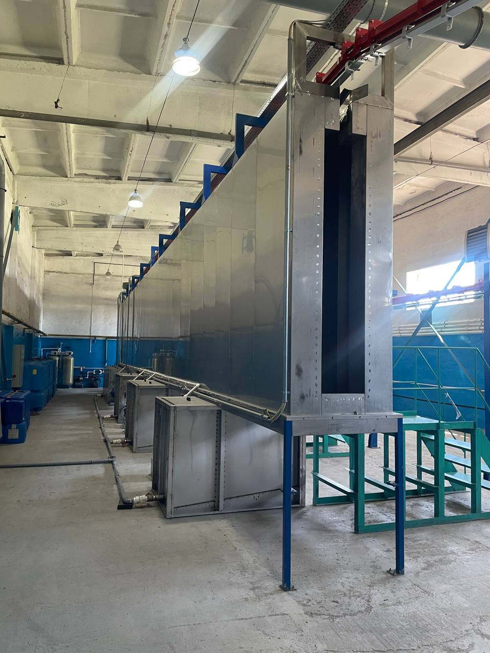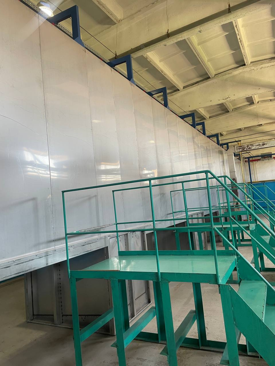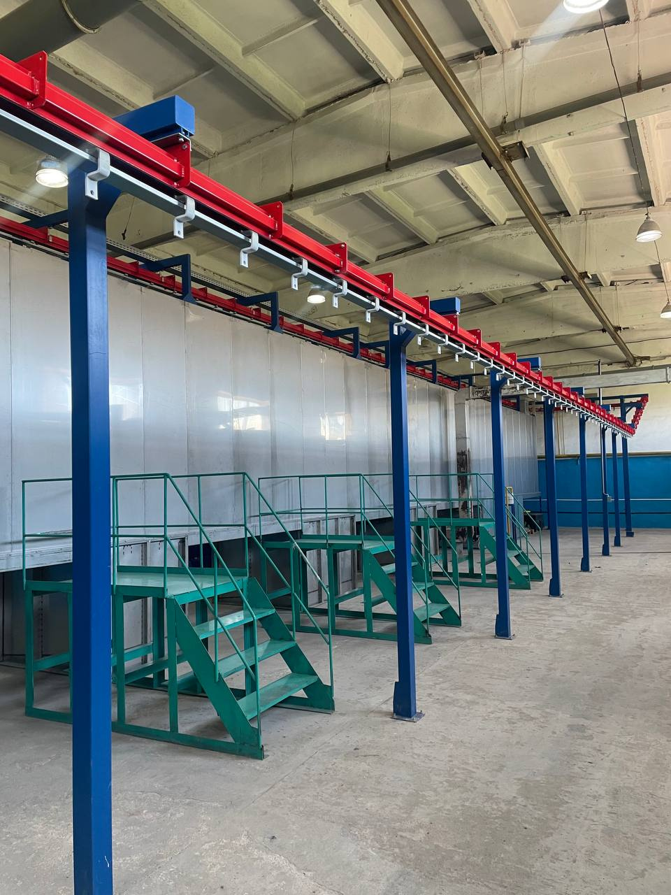 Машина представляет собой туннель для обезжиривания с 4 ступенями и сушильной печью, станцией ручной окраски и пекарной печью.