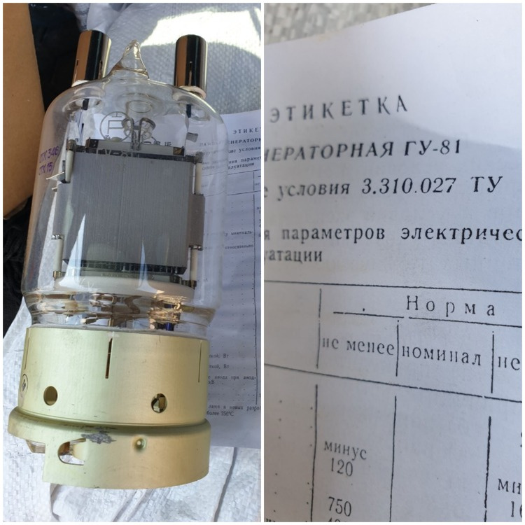 Генераторний пентод ГУ-81 з вольфрамовим карбідованим катодом прямого розжарення у скляній оболонці та повітряним охолодженням.