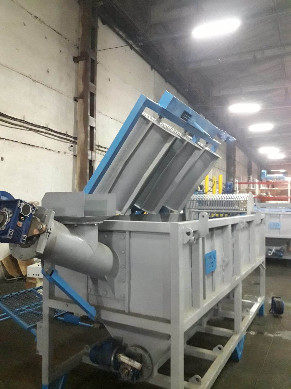 | Мойка полимеров с положительной и отрицательной плавучестью. Ванна флотации PZO-VF302+ в комплекте с приставным шнековым транспортером PZO-VH. Сырье с положительной плавучестью выгружается из ванны по лотку и попадает в зону загрузки шнекового транспортера. Там материал отделяется от влаги через перфорированное дно транспортера и перемещается вращающимся шнековым валом в зону выгрузки.Объём воды- 5500 л. |